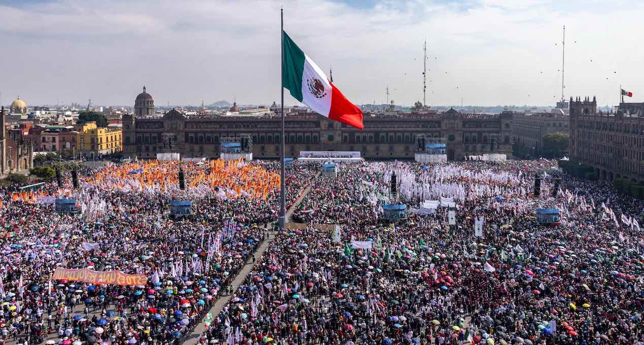Ciudad de México, 6 de diciembre de 2025. Ante más de 600 mil mexicanas y mexicanos reunidos en el Zócalo de la Ciudad de México, la Presidenta Claudia Sheinbaum Pardo, celebró los 7 años de la llegada de la Cuarta Transformación y puntualizó que por más campañas sucias y alianzas de grupos del conservadurismo nacional e internacional que buscan intervenciones extranjeras, no podrán vencer al pueblo ni a la Jefa del Ejecutivo Federal, ya que el movimiento representa una ruptura con el viejo régimen y una transformación verdadera, económica, social y moral que se guía por el Humanismo Mexicano.